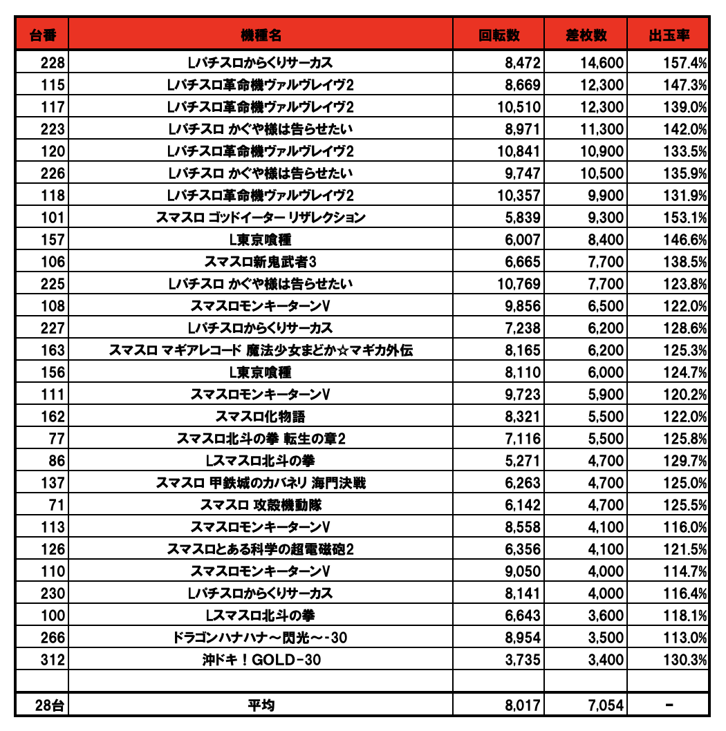 出玉ランキングTOP28